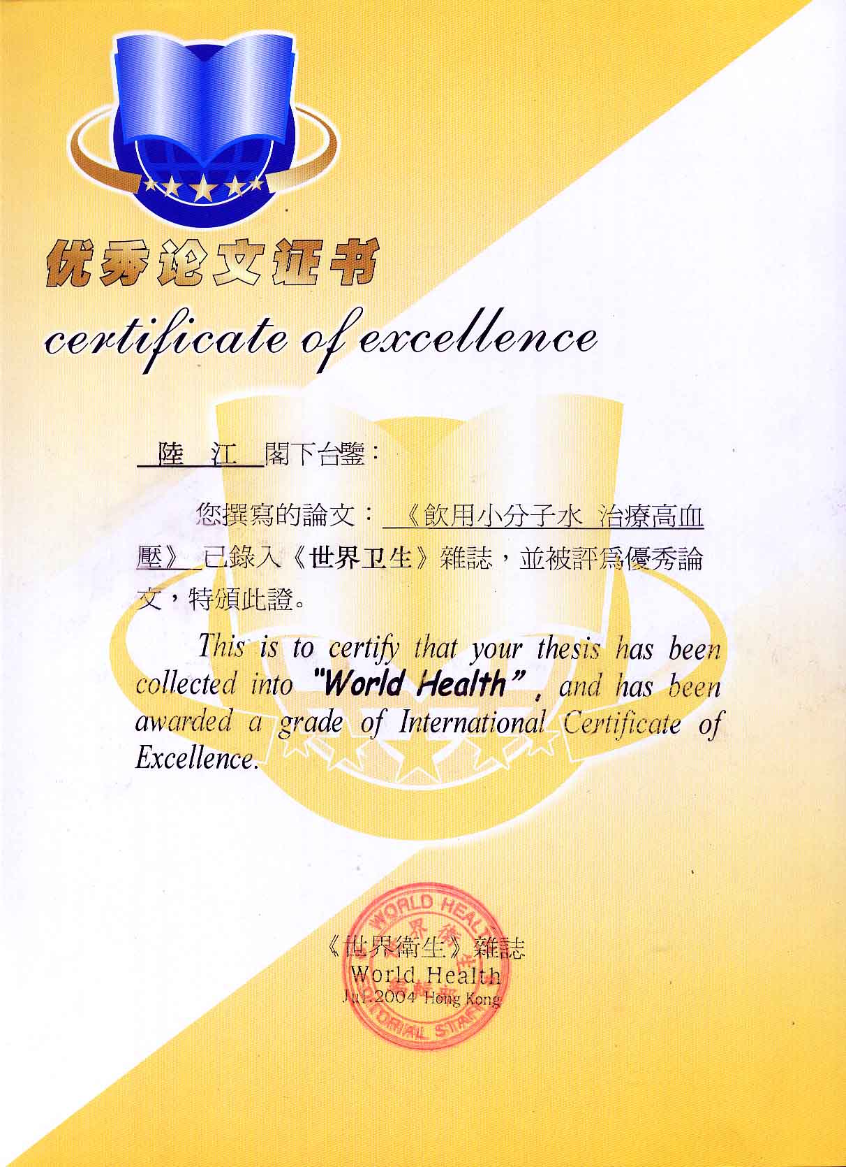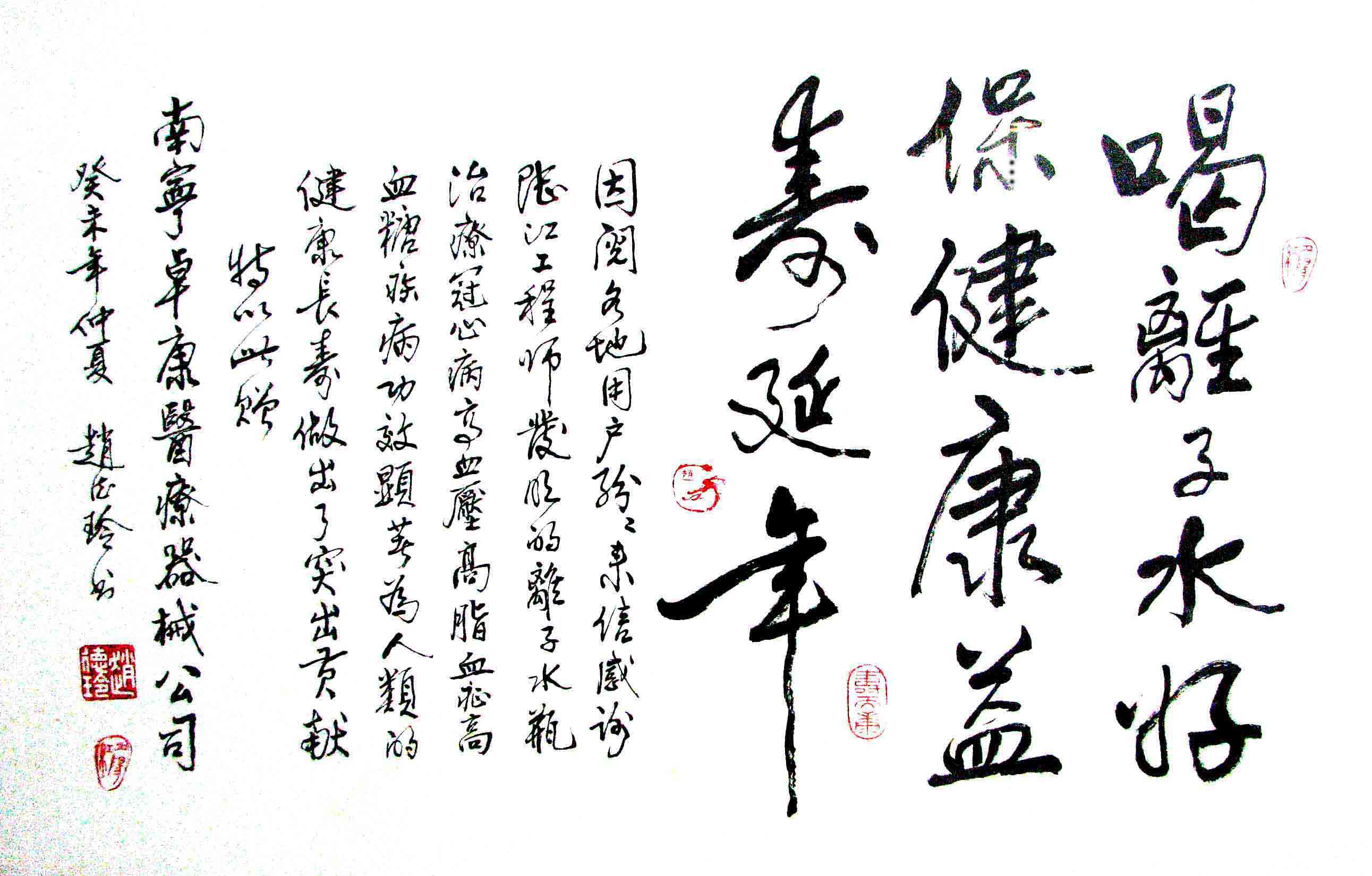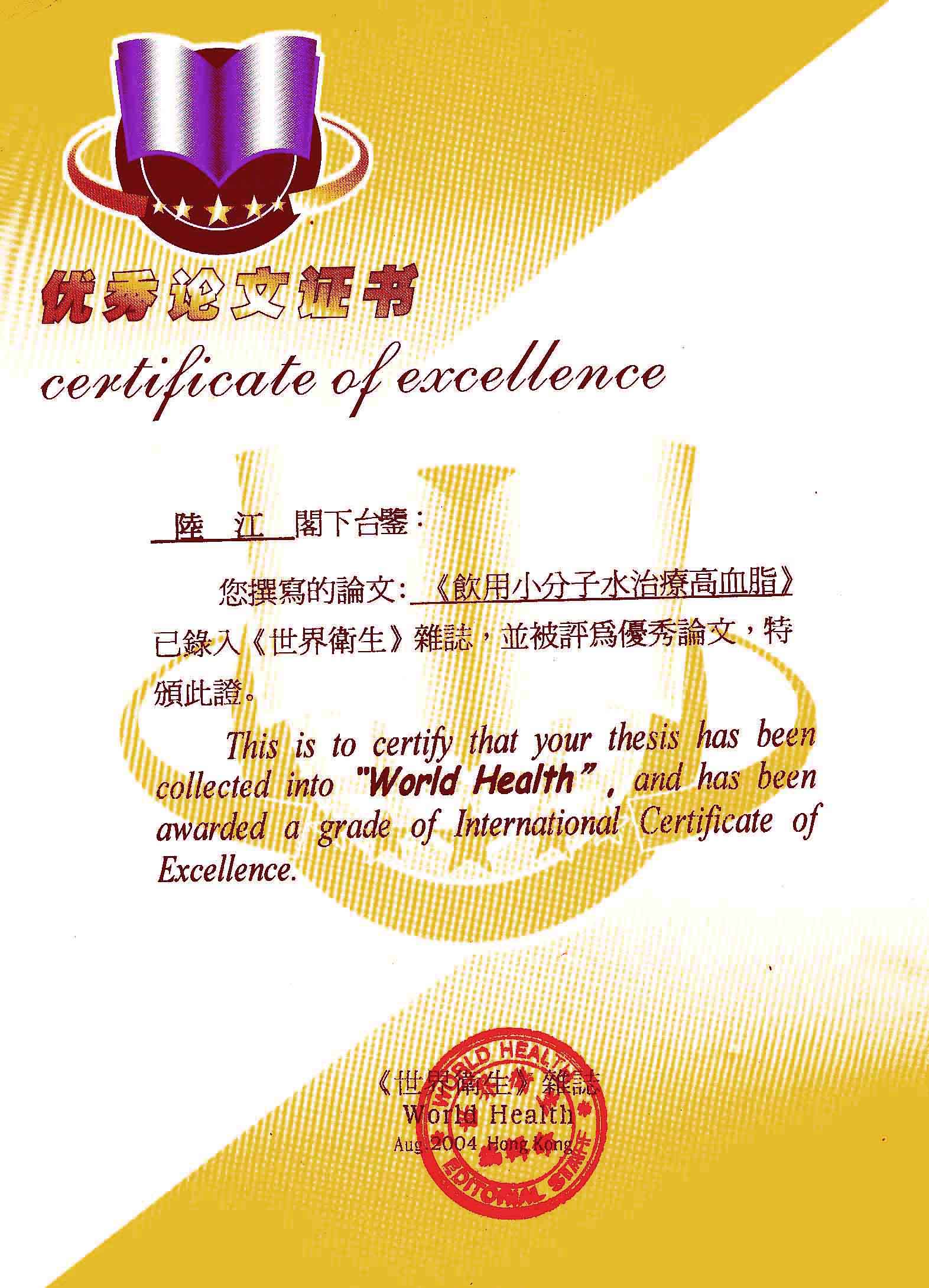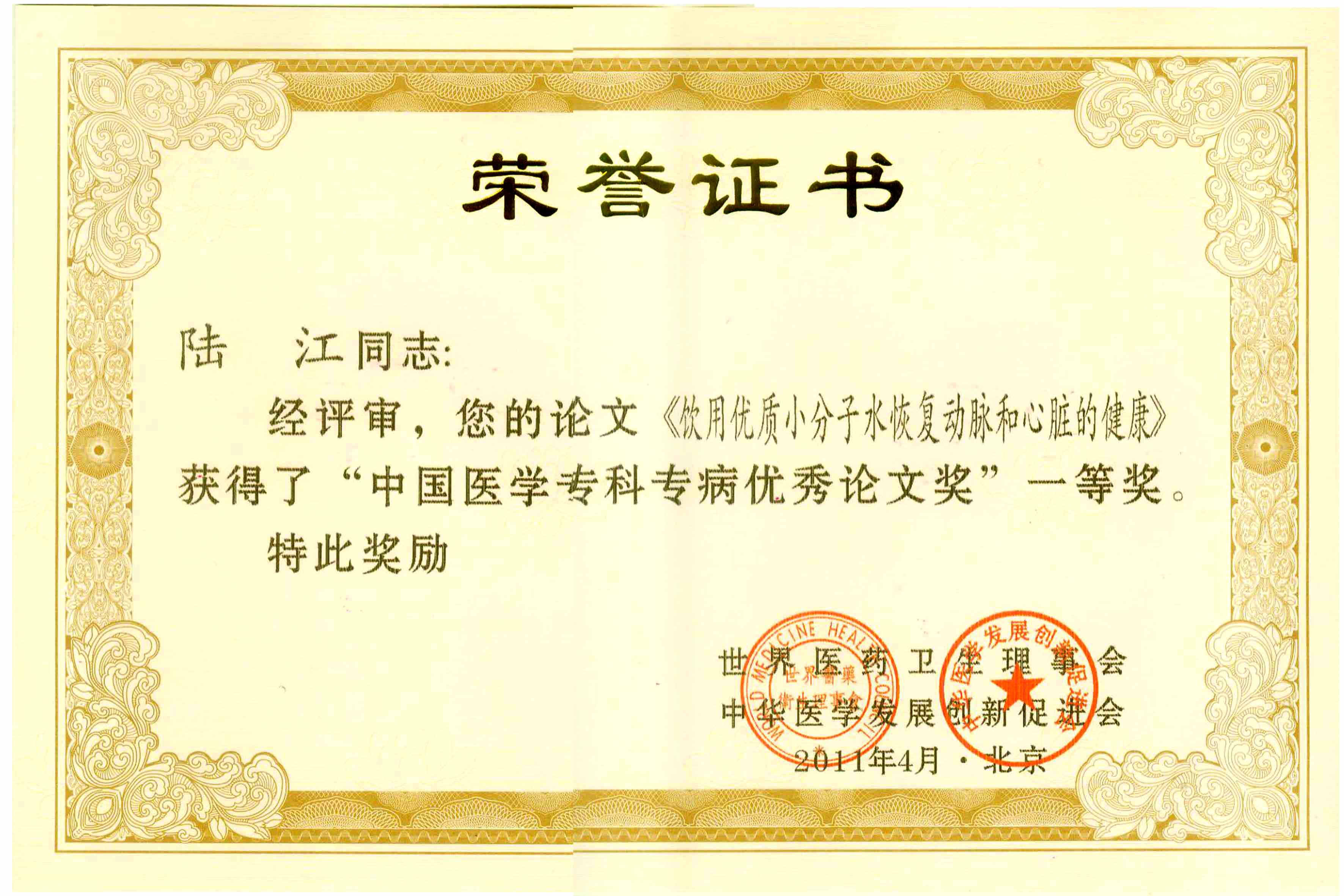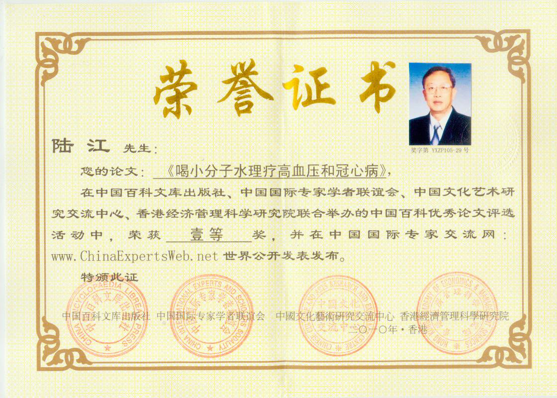 -----我是從事建筑的高工,本來沒有資格去攻克醫(yī)學難題,卻為了自身健康才扣響醫(yī)學的大門。由于我1990年患高血壓,因怕中風才研究發(fā)明了離子水瓶,我把水處理成微小分子團水,飲用后治愈了高血壓。便于1993年底送到三家省級醫(yī)院做臨床試用4個月。經(jīng)北京和廣西醫(yī)學專家鑒定:"降脂降壓效果好"," 能擴大心腦動脈流量,改善心腦電圖以及微循環(huán)","對治療心腦動脈粥樣硬化、高血壓、高血脂有良好的醫(yī)療保健作用。""產(chǎn)品的技術性能和療效達到了同類產(chǎn)品的國內(nèi)領先水平,經(jīng)廣西醫(yī)學科學情報研究所檢索,未見國外有類似報道。"中國醫(yī)學科學院張正國教授從美國國立醫(yī)學圖書館數(shù)據(jù)庫存Medline檢索英俄文資料,均未見類似報告。2000年上市后,我為了對消費者負責而繼續(xù)觀察研究,一直通過《信譽卡》和《質量跟蹤調查書》向患者承諾療效,請用戶使用6個月后反饋效果。和脂壓患者飲用2至5個月內(nèi),消除癥狀,停服藥物,血壓正常;冠心病患者飲用3~5個月逐漸減輕至消除心絞痛、房顫等癥狀,不再服藥,飲用1年左右心電圖正常,經(jīng)冠脈造影掃描無明顯狹窄,表明冠心病痊愈。大量患者還反映許多衰弱器官被修復,讓前列腺增生、慢性咽喉炎、慢性氣管炎、支氣管炎、慢性胃炎、腸炎和膽囊炎等不藥而愈;2型糖尿病患者是因為胰島衰弱致病,飲用該水半年至一年,逐漸減藥至停藥,血糖尿糖正常,真正治愈2型糖尿病。中風后遺癥患者飲用六七個月,可逐漸減輕至消除肢體和語言障礙,表明飲用該水能讓壽命很長的神經(jīng)元細胞逐漸修復,奇跡般地恢復肢體和語言功能。飲用后還使胸腺和脾臟兩個重要的免疫器官被修復和增強,產(chǎn)生免疫細胞多,提高了免疫力,使人不生病或少生病。自此, 飲用微小分子團水創(chuàng)造了攻克冠心病、高(低)血壓和糖尿病三大醫(yī)學難題的奇跡。人們對此感到不可思議,但實踐是檢驗真理的唯一標準。