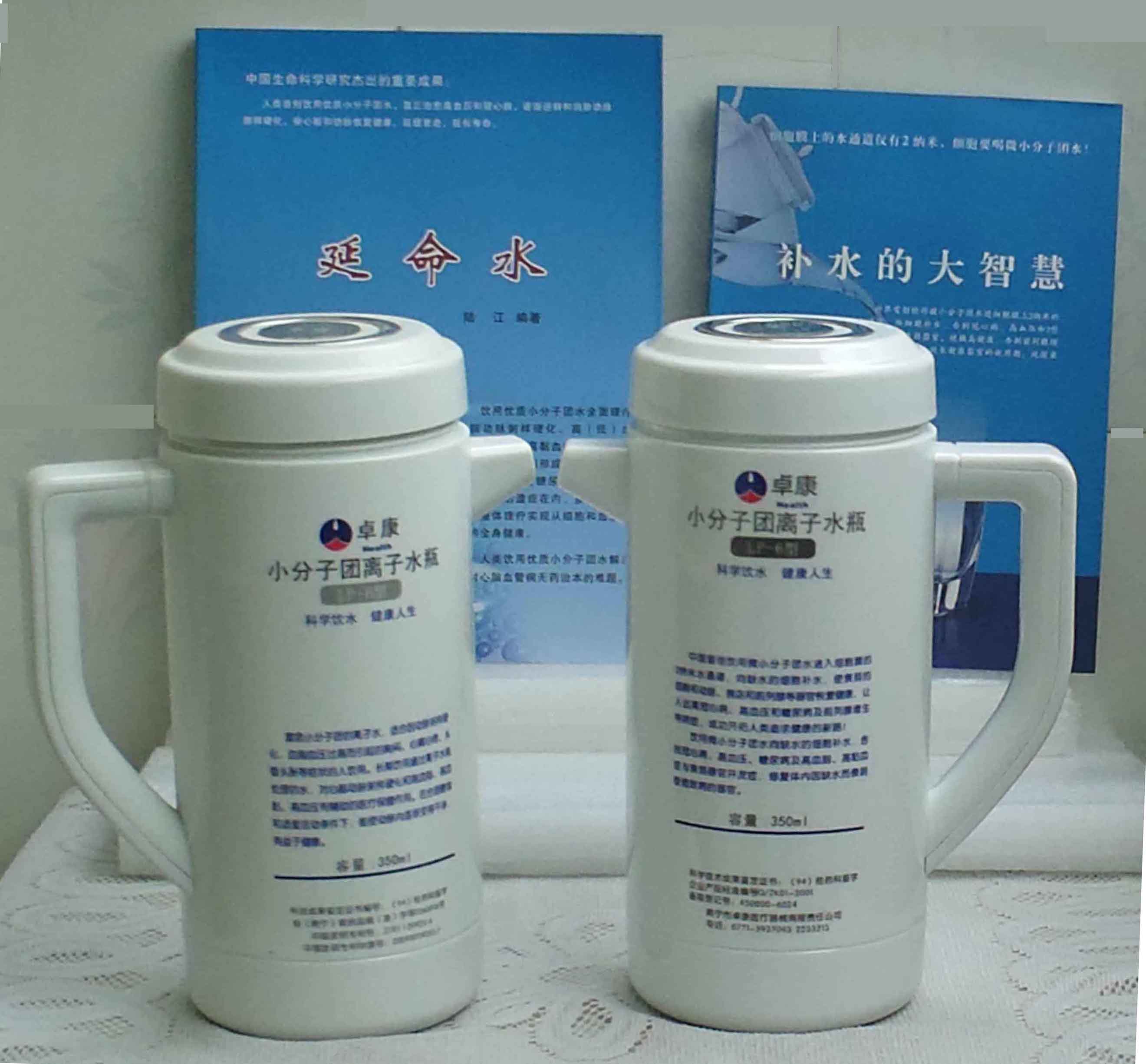 本品大量用戶的使用效果表明,能治愈冠心病、腦動脈硬化、原發(fā)性高(低)血壓、高血脂、高粘血癥、高血尿酸癥(痛風)和2型糖尿病、衰弱器官并發(fā)癥(前列腺增生、腎衰與尿毒癥)及中風后遺癥等療效好。產(chǎn)品配信譽卡。使用壽命30年,不換芯,易清洗。團購優(yōu)惠。從郵局匯款,匯費1%,地址按本頁下方地址、聯(lián)系人寫。從銀行匯款,請點擊[聯(lián)系匯款]欄,從工商銀行匯款,建設銀行、農(nóng)業(yè)銀行匯款,均免收匯費,匯款后20--30分鐘內(nèi)發(fā)短信,可用微信轉帳,均免匯費,微信號即手機號13768308380。匯款后,告知你的姓名和地址,我公司聯(lián)系人手機號是:13768308380。卓康牌離子水瓶為我公司獨家生產(chǎn),郵購產(chǎn)品配《補水的大智慧》彩印書一本,另配四季出版社出版的新書《補水的大智慧》一本,并配光盤一張(含央視主持人釆訪陸江的對話視頻)。目前市場和"淘寶網(wǎng)"上有人兜售假冒的偽品,望讀者審察辯別真?zhèn)?,造假者剽竊假冒本公司的各種認證、獲獎獎項、專利號和外包裝盒上的中英文字,包括科技成果的鑒定意見等,請讀者注意防偽。如何識別假貨?已經(jīng)買了假貨怎么辦?(請點擊[打假掠影][打假掠影])。